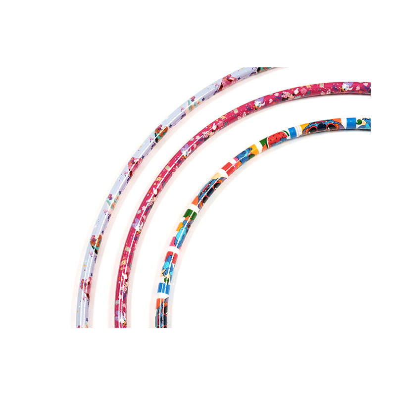 Ovu šarenu naljepnicu za djecu s obručima izrađena je od odabranih PE cijevi, koja je sigurna, ekološki prihvatljiva i čvrsta. Njegova je površina zalijepljena šarenim tiskarskim filmom, s različitim uzorcima i svijetlim bojama, uključujući žutu s plavim, zelenim i crvenim uzorcima, i ljubičaste boje s šarenim uzorcima, koji je i moderan i zanimljiv. Ovaj hula obruč ne samo da ima prekrasan oblik, već također pokazuje sjajne vizualne efekte pri rotaciji, stimulirajući dječji interes za sport, tako da mogu vježbati svoja tijela dok uživaju u dvostrukoj zabavi vida i sporta.