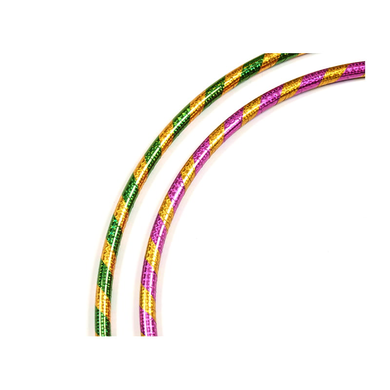 Ovaj dječji dvobojni laserski hula obrub izrađen je od ekološki prihvatljivih cijevi kao čvrsti i izdržljiv kostur, omotan oko jedinstvenog dvobojnog laserskog filma. Površina filma isprepletena je ljubičastim, zelenim i zlatnim prugama, koja je šarena i puna pokreta. Dva hula obruča nalaze se u različitim veličinama kako bi zadovoljile potrebe djece različitih dobnih skupina, modniji i energičniji. Ovaj hula obruč nije samo dobar partner za djecu koju treba vježbati, već i preferirana igračka za roditelje i djecu za interakciju i dijeljenje sreće.
