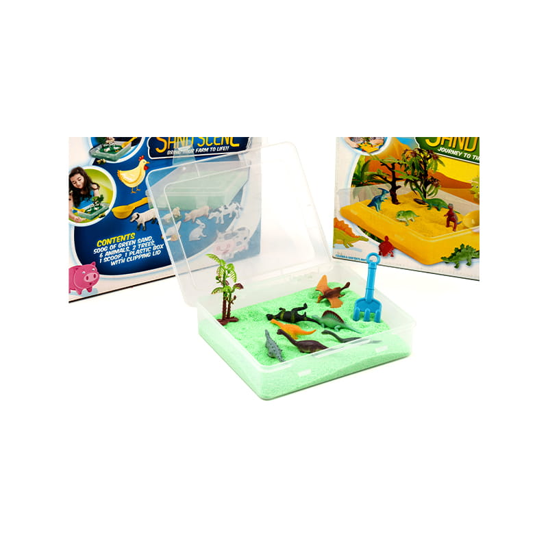 Farma/Dino Sand Scene, kreativni je igranje pijeska postavljen za djecu. Sadrži bistru plastičnu kutiju, pijesak bogate boje i razne simpatične ukrase za životinje. Djeca mogu slobodno stvarati na pijesku i organizirati svoje omiljene ukrase za životinje i biljke kako bi stvorili jedinstvenu scenu na farmi ili dinosaura. Ova igra ne samo da može potaknuti dječju kreativnost i maštu, već ih i pustiti da nauče o životinjama i prapovijesnim stvorenjima u igri i uživaju u sretnom vremenu učenja.